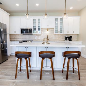 This home highlights a mid century modern yet relaxed spa like décor. Featuring 3 master suites, and 3 master bathrooms, aimed at privacy and spa like tranquil amenities. Be sure to check out our patio for grilling and outdoor dining